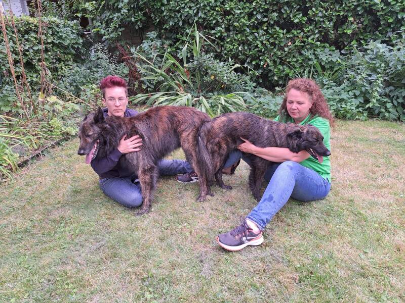 Alle pups zijn na 9 weken uitgevlogen naar mooie gouden huisjes. De stambomen zijn inmiddels allemaal uitgedeeld en we hebben de pups in hun eigen omgeving gezien. Eefke en Catoke waren steeds mee. Wat een feest iedere keer weer. Eerst de herkenning van de pup bij het horen van onze stemmen, de herkenning van Catoke en het mooie gebalanceerde spel samen en daarna kwam Eefke erbij. Pup eerst even onderdanig, Eefke snuffelde wat aan de kontjes, poetsen hoeft echt niet meer, en daarna volgde voornamelijk spel met Catoke. Op het moment dat ze beiden moe werden namen ze zeker 5 seconden rust, om vervolgens meteen weer door te spelen. Heerlijk!